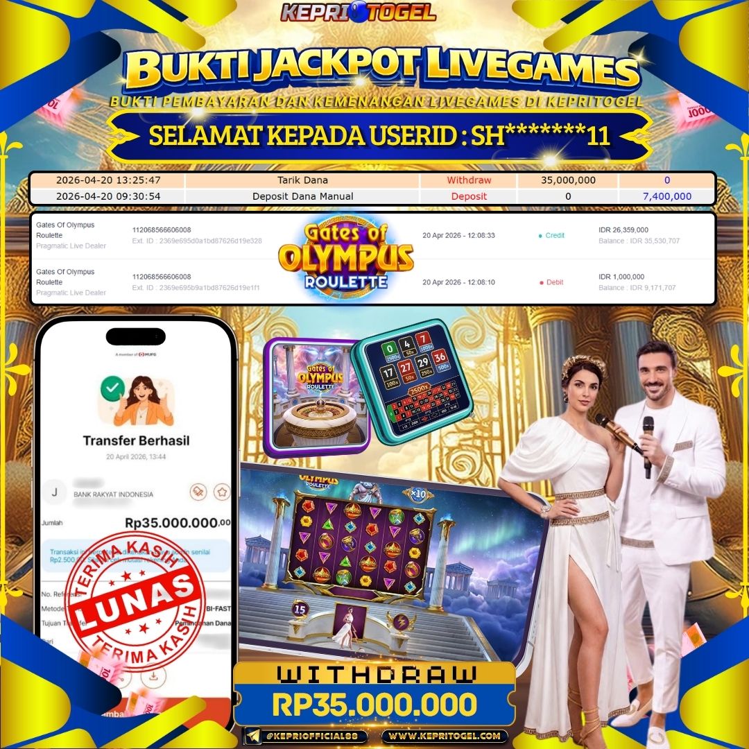 Kepritogel Jackpot Live Game Gates Of Olympus Roulette Rp35,000,000