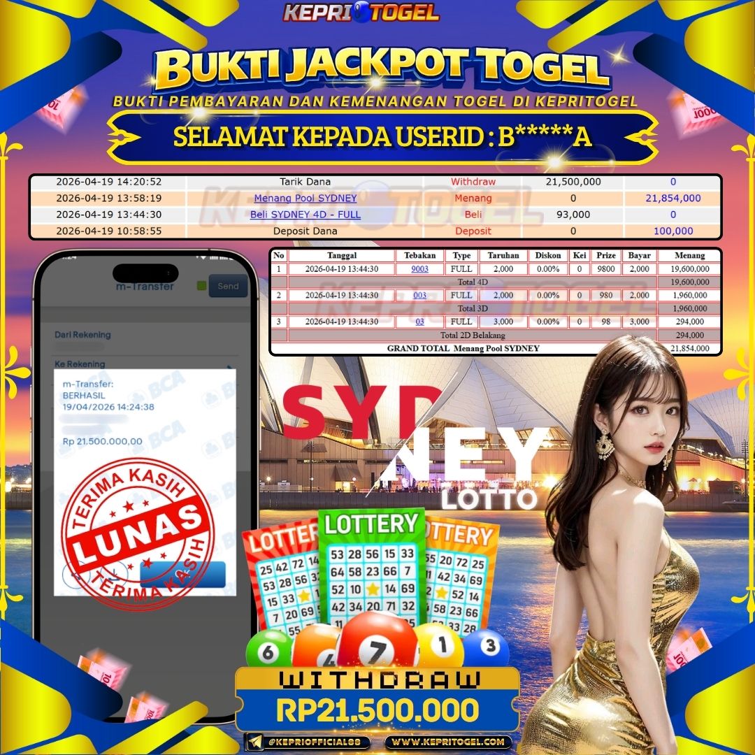 Kepritogel Jackpot Togel SYDNEY LOTTO Rp21,500,000