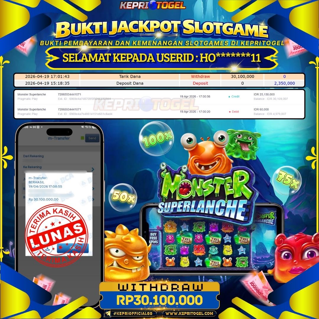 Kepritogel Jackpot Slot Monster Superlanche Rp30,100,000