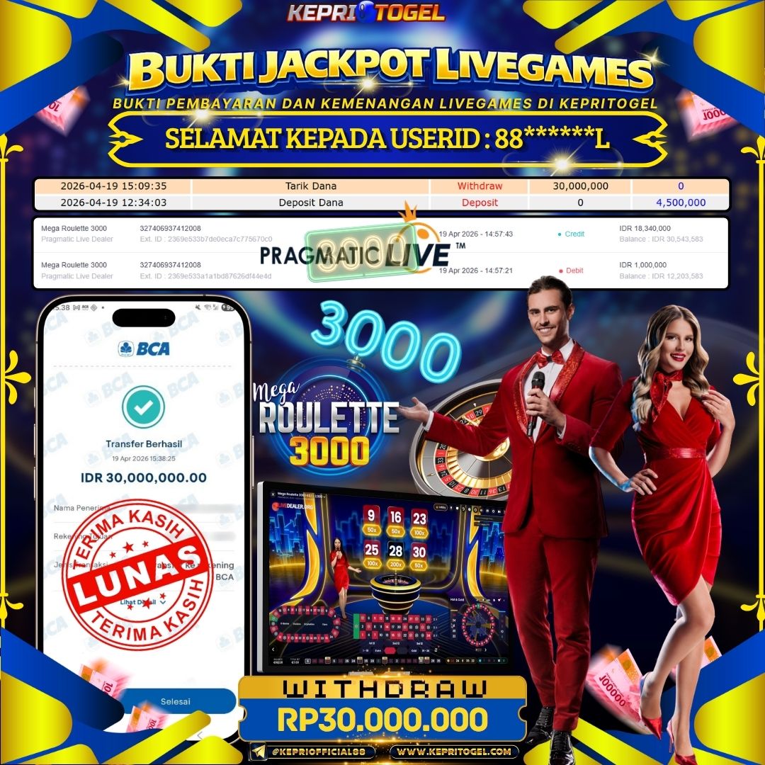 Kepritogel Jackpot Live Game Mega Roulette 3000 Rp30,000,000