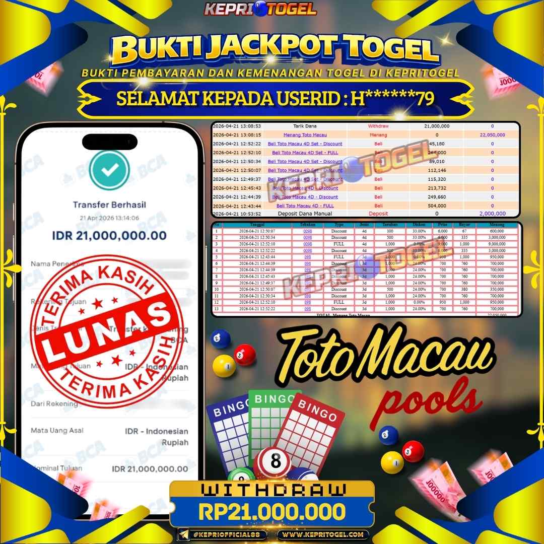 Kepritogel Jackpot Togel Totomacau 4D Rp21,000,000