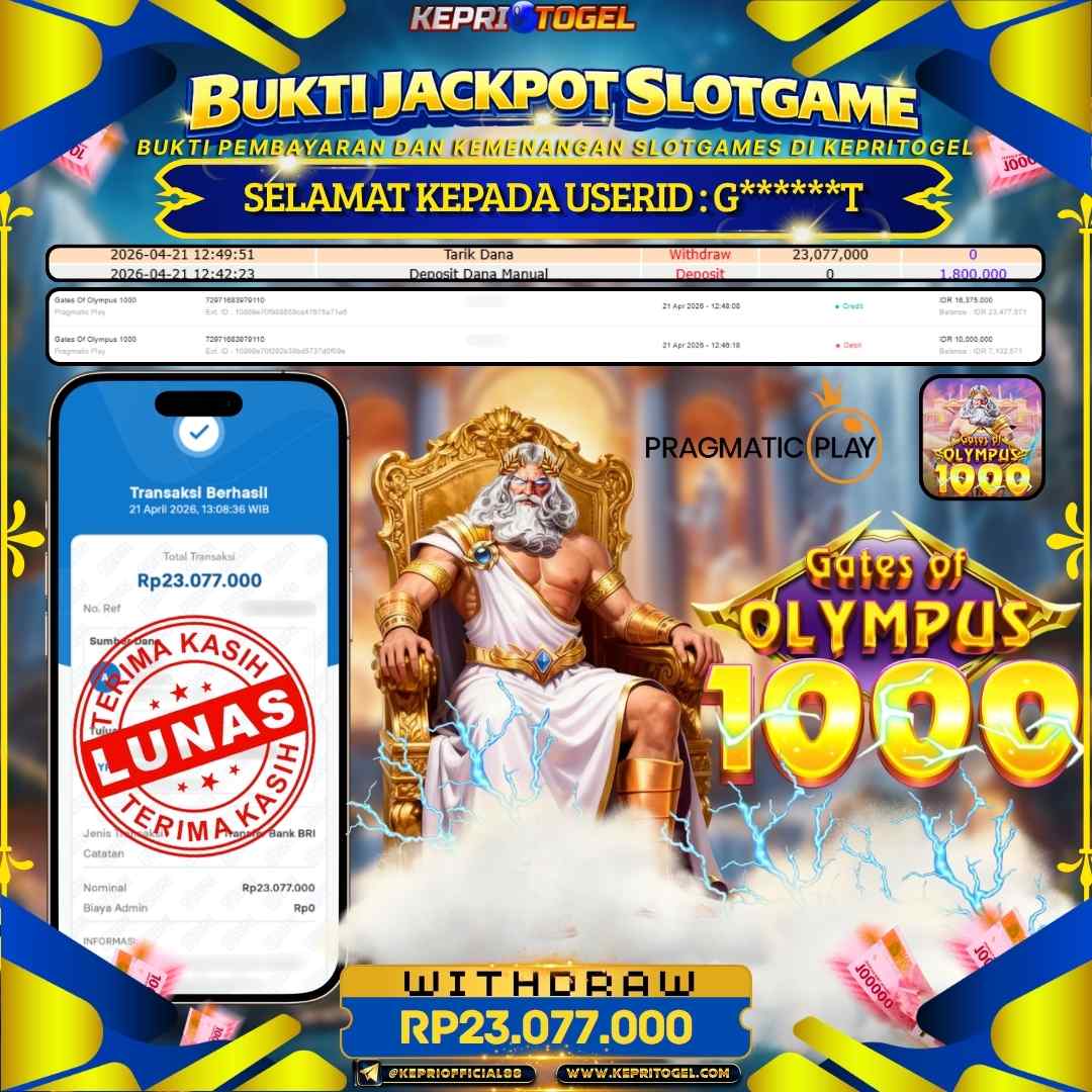 Kepritogel Jackpot Slot Gates Of Olympus 1000 Rp23,077,000