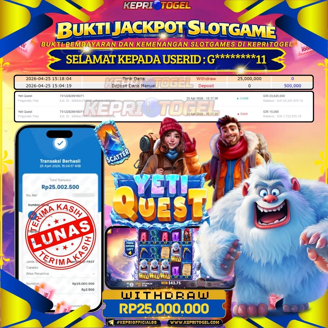 Kepritogel Jackpot Slot Yeti Quest Rp25,000,000