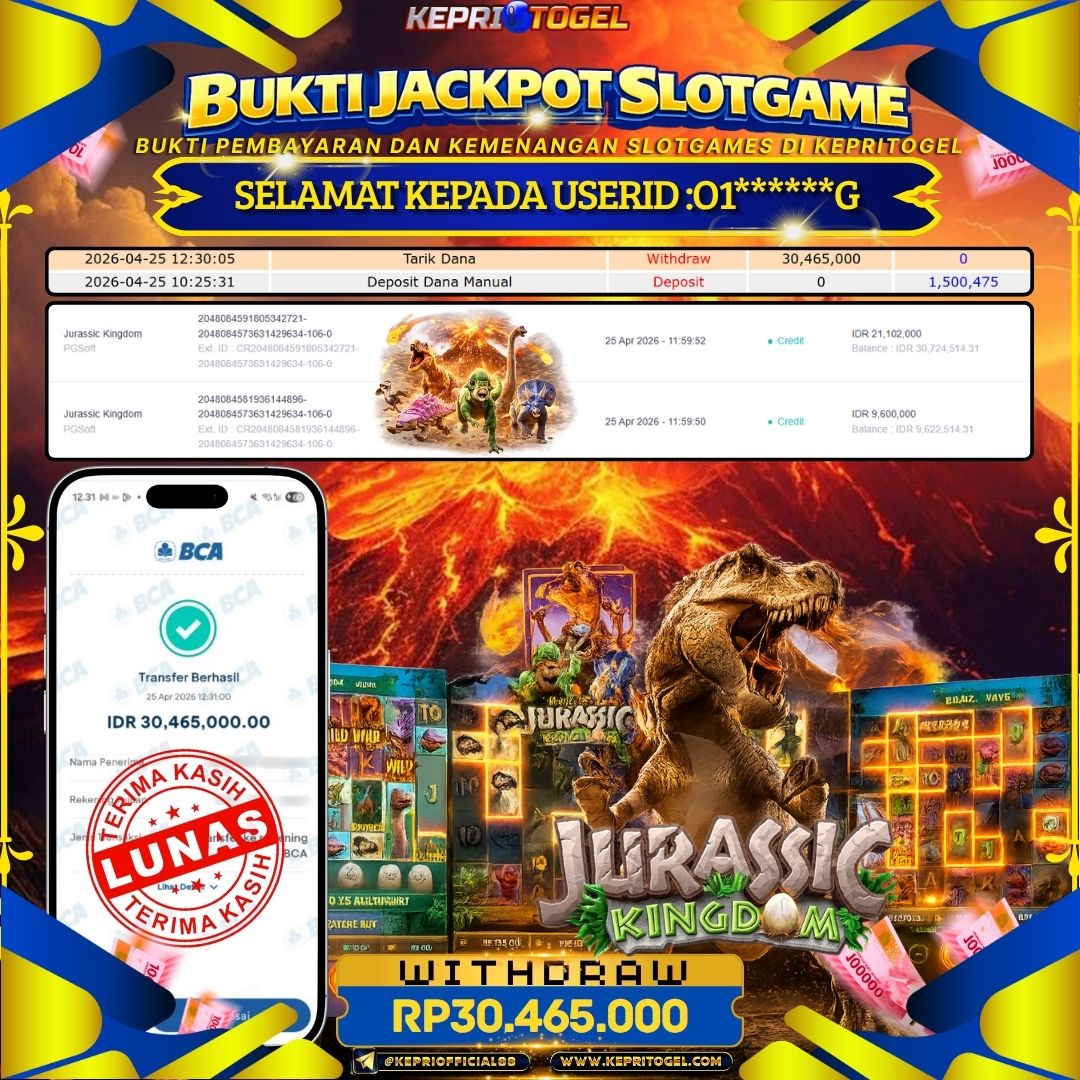 Kepritogel Jackpot Slot Jurassic Kingdom Rp30,465,000