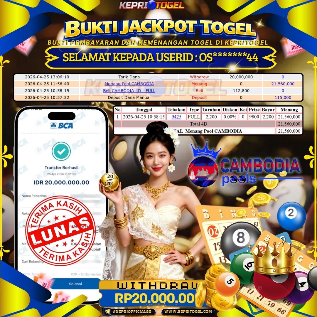 Kepritogel Jackpot Togel CAMBODIA Rp20,000,000