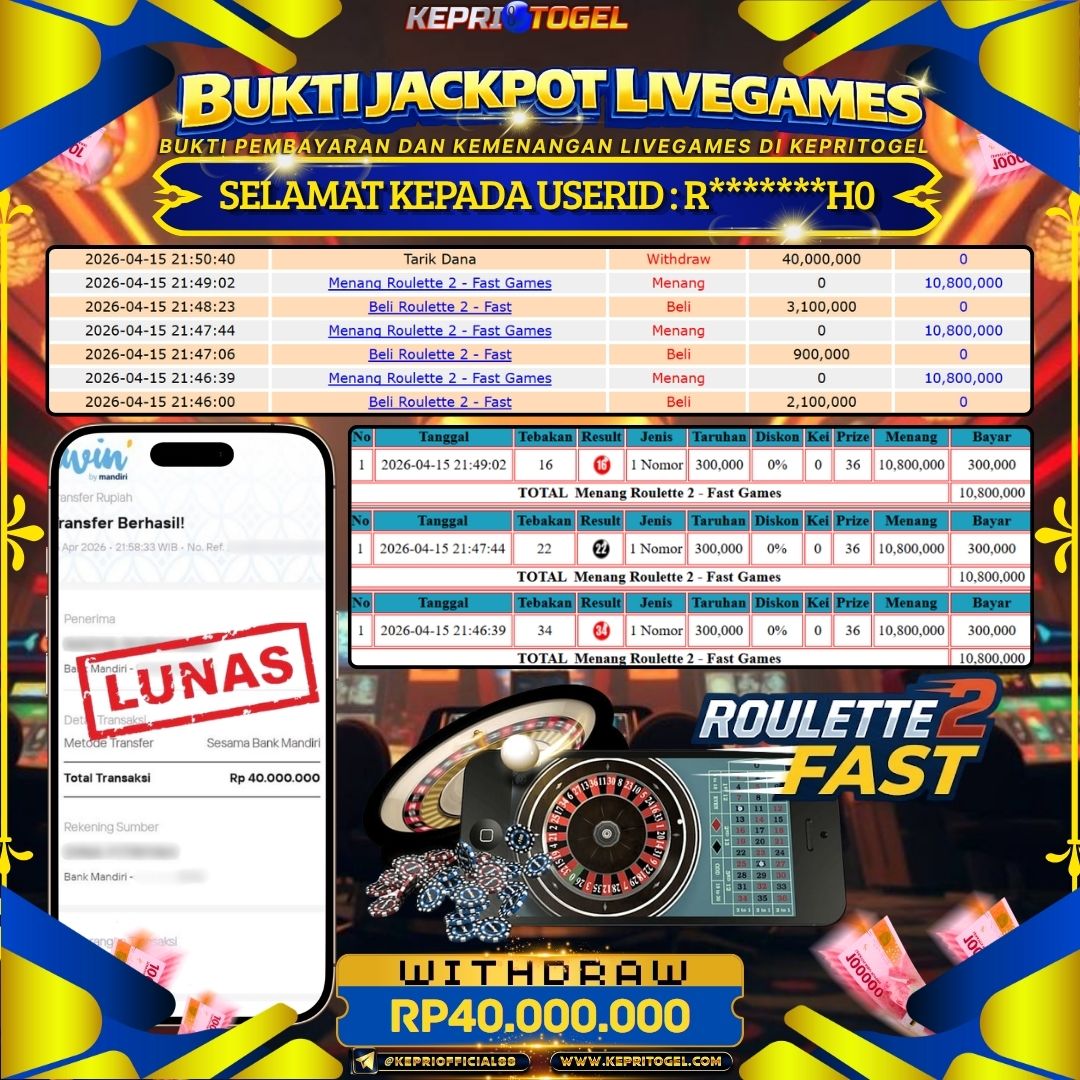 Kepritogel Jackpot Live Game Roulette 2 - Fast Games Rp40,000,000