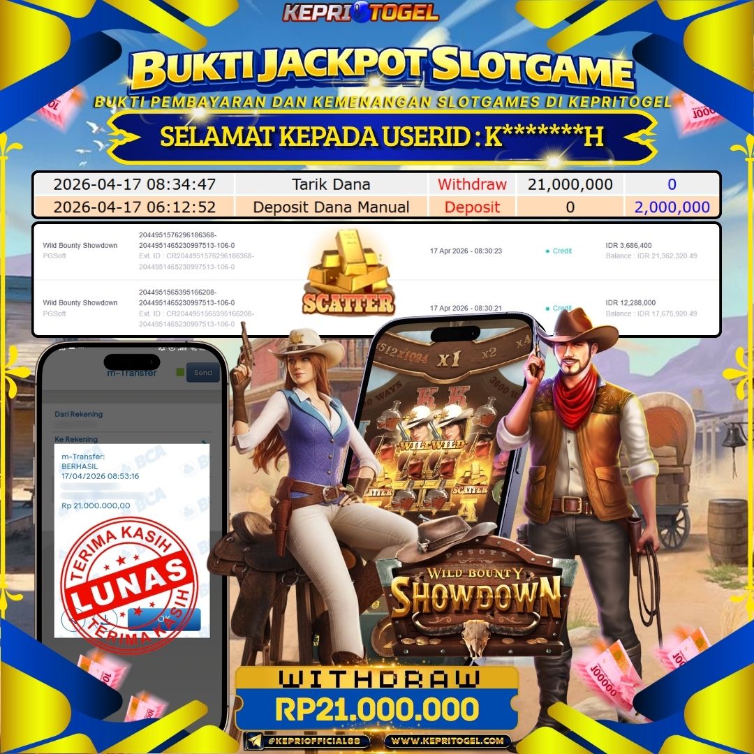 Selamat kepada UserId K*******H telah berhasil mendapatkan kemenangan jackpot pada permainan Slot Wild Bounty Showdown Kepritogel sebesar Rp21,000,000- . Kepritogel situs terpercaya sejak dulu hingga saat ini , Untuk kemenangan berapapun pasti akan kami bayarkan . Jangan ragu bermain di Kepri Togel . Kami pihak Kepritogel Menyampaikan terima kasih kepada seluruh member Kepri Togel yang telah Percaya dan setia Bersama kami bermain di Kepritogel hingga saat ini.