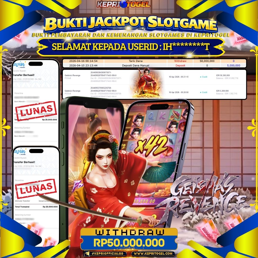 Selamat kepada UserId IH********T telah berhasil mendapatkan kemenangan jackpot pada permainan Slot Geisha's Revenge Kepritogel sebesar Rp50,000,000- . Kepritogel situs terpercaya sejak dulu hingga saat ini , Untuk kemenangan berapapun pasti akan kami bayarkan . Jangan ragu bermain di Kepri Togel . Kami pihak Kepritogel Menyampaikan terima kasih kepada seluruh member Kepri Togel yang telah Percaya dan setia Bersama kami bermain di Kepritogel hingga saat ini.