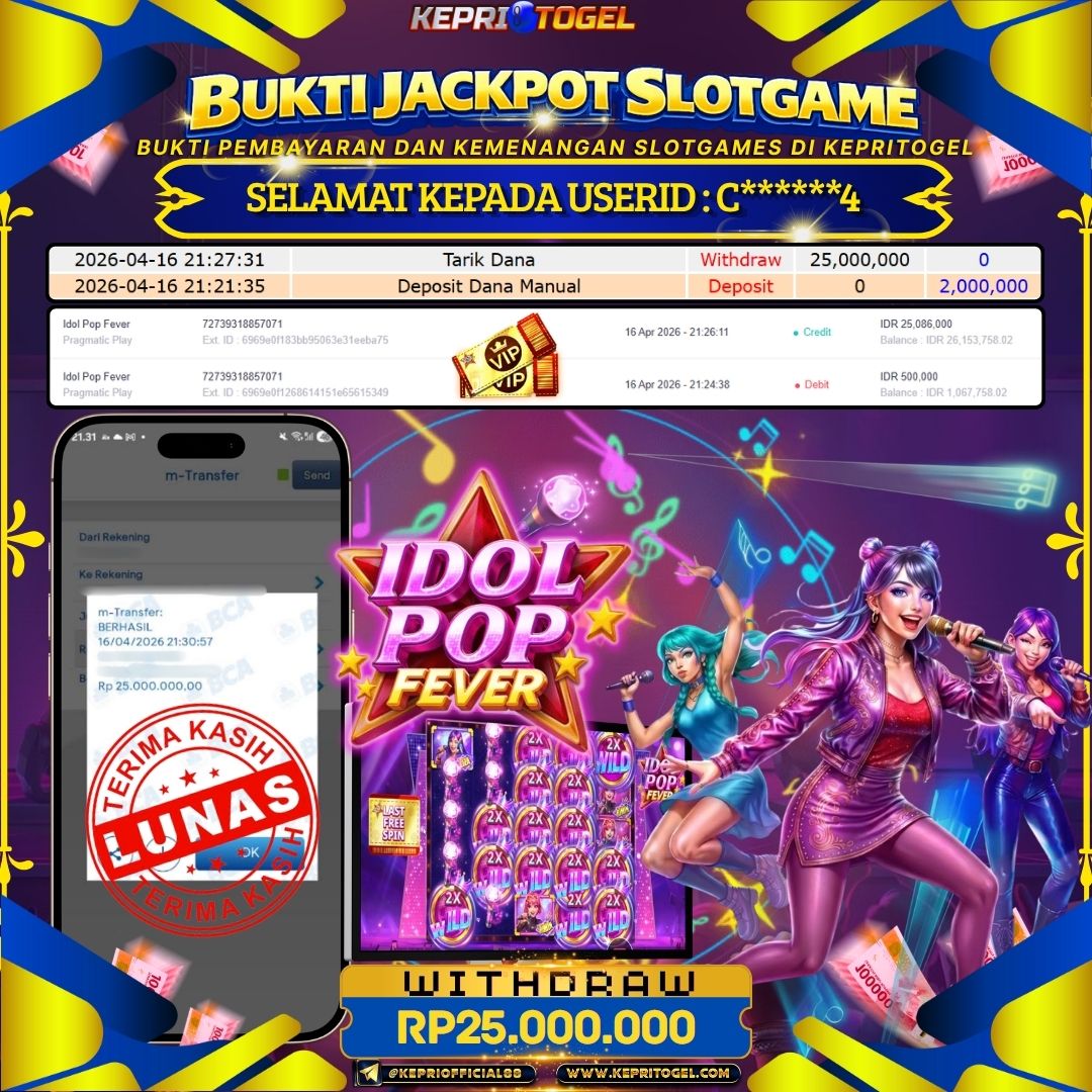 Selamat kepada UserId C******4 telah berhasil mendapatkan kemenangan jackpot pada permainan Slot Idol Pop Fever Kepritogel sebesar Rp25,000,000- . Kepritogel situs terpercaya sejak dulu hingga saat ini , Untuk kemenangan berapapun pasti akan kami bayarkan . Jangan ragu bermain di Kepri Togel . Kami pihak Kepritogel Menyampaikan terima kasih kepada seluruh member Kepri Togel yang telah Percaya dan setia Bersama kami bermain di Kepritogel hingga saat ini.