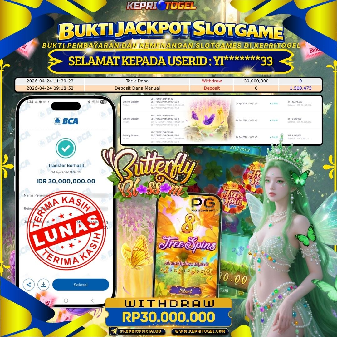 Selamat kepada UserId YI*******33 telah berhasil mendapatkan kemenangan jackpot pada permainan Slot Butterfly Blossom Kepritogel sebesar Rp30,000,000- . Kepritogel situs terpercaya sejak dulu hingga saat ini , Untuk kemenangan berapapun pasti akan kami bayarkan . Jangan ragu bermain di Kepri Togel . Kami pihak Kepritogel Menyampaikan terima kasih kepada seluruh member Kepri Togel yang telah Percaya dan setia Bersama kami bermain di Kepritogel hingga saat ini.