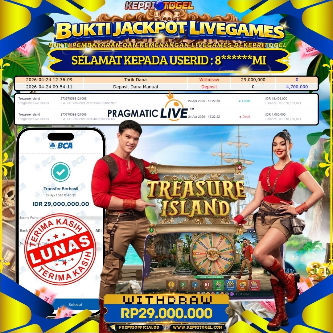 Kepritogel Jackpot Live Game Treasure Island Rp29,000,000