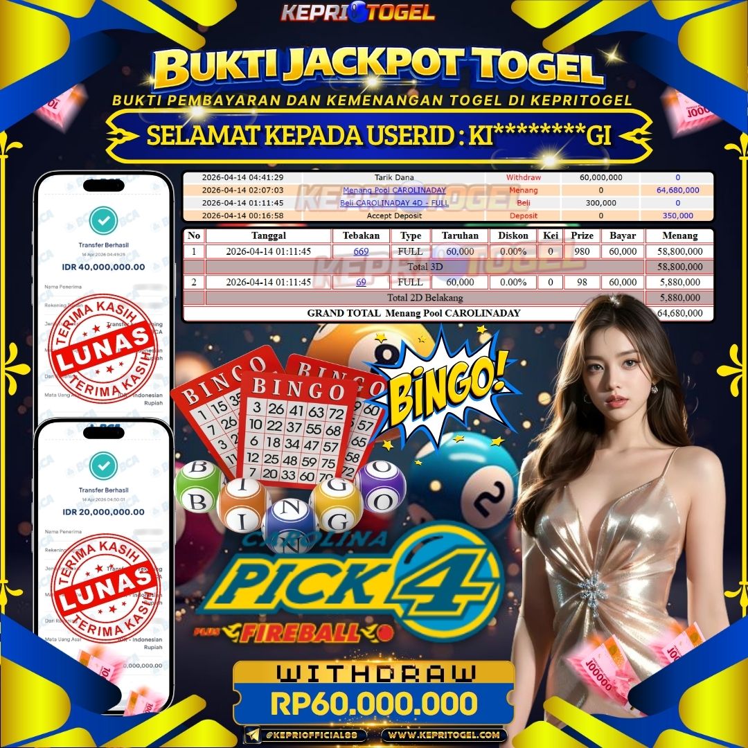 Kepritogel Jackpot Togel CAROLINADAY Rp60,000,000