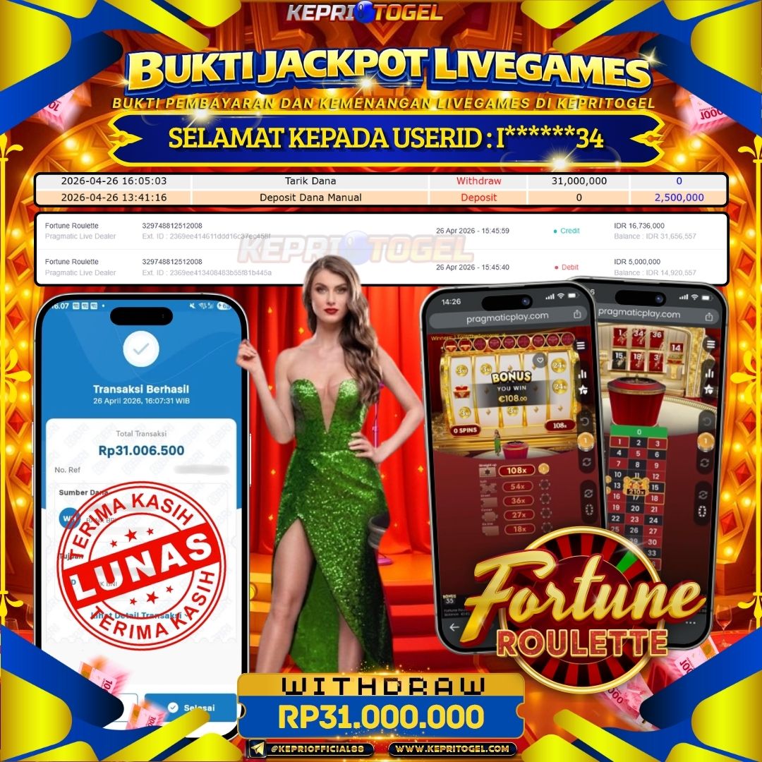Kepritogel Jackpot Live Game Fortune Roulette Rp31,000,000