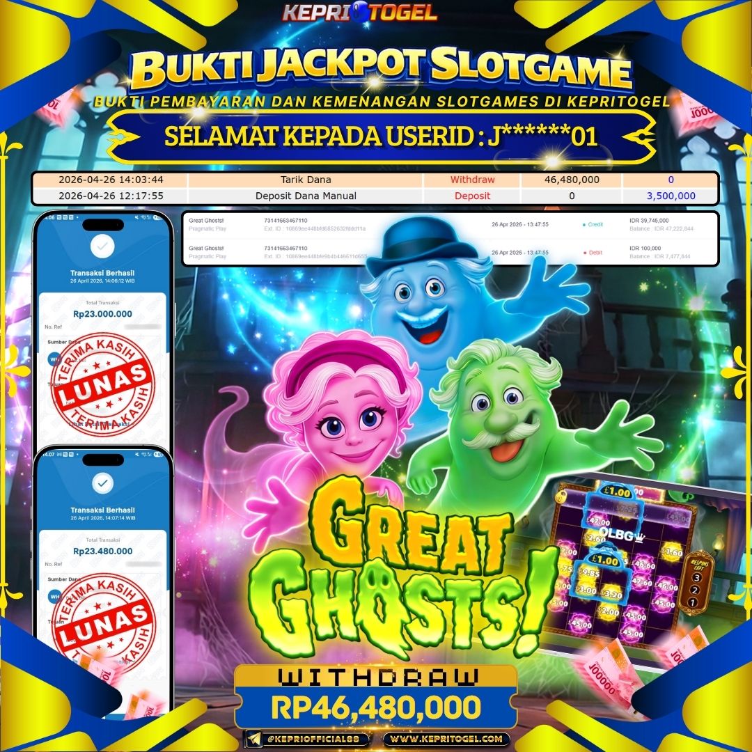 Selamat kepada UserId J******01 telah berhasil mendapatkan kemenangan jackpot pada permainan Slot Great Ghosts! Kepritogel sebesar Rp46,480,000- . Kepritogel situs terpercaya sejak dulu hingga saat ini , Untuk kemenangan berapapun pasti akan kami bayarkan . Jangan ragu bermain di Kepri Togel . Kami pihak Kepritogel Menyampaikan terima kasih kepada seluruh member Kepri Togel yang telah Percaya dan setia Bersama kami bermain di Kepritogel hingga saat ini.