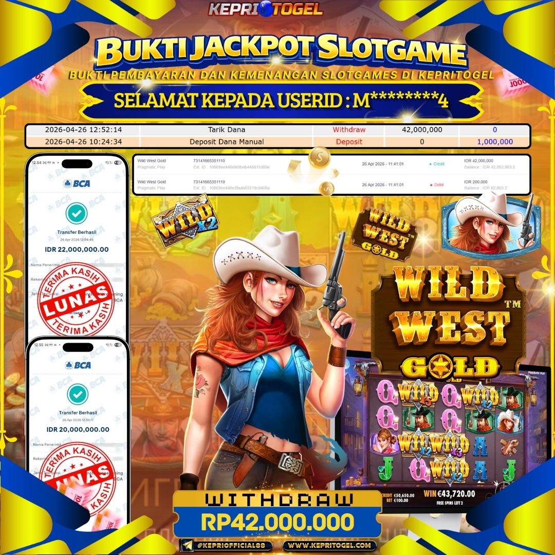 Selamat kepada UserId M********4 telah berhasil mendapatkan kemenangan jackpot pada permainan Slot Wild West Gold Kepritogel sebesar Rp42,000,000- . Kepritogel situs terpercaya sejak dulu hingga saat ini , Untuk kemenangan berapapun pasti akan kami bayarkan . Jangan ragu bermain di Kepri Togel . Kami pihak Kepritogel Menyampaikan terima kasih kepada seluruh member Kepri Togel yang telah Percaya dan setia Bersama kami bermain di Kepritogel hingga saat ini.
