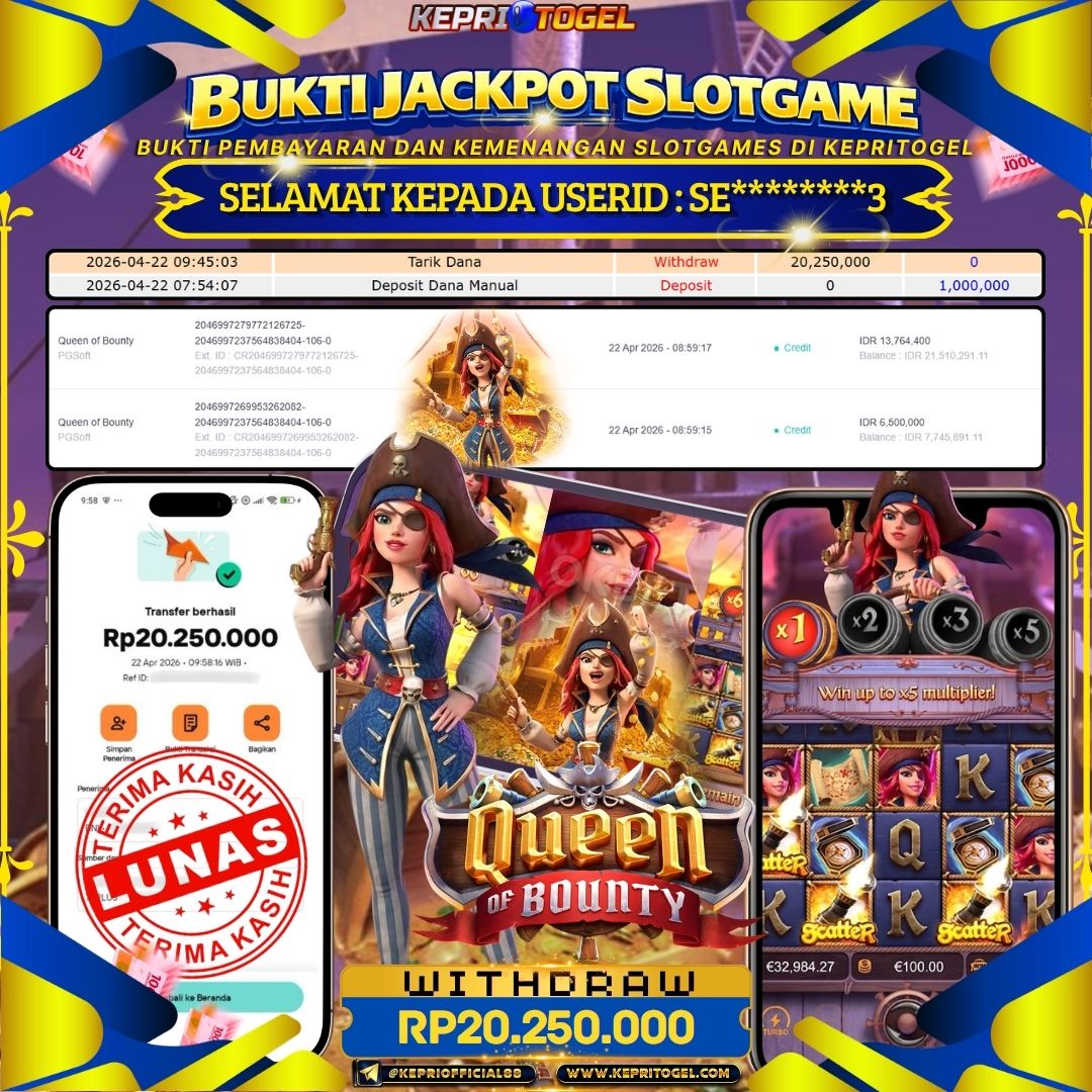 Kepritogel Jackpot Slot Queen of Bounty Rp20,250,000