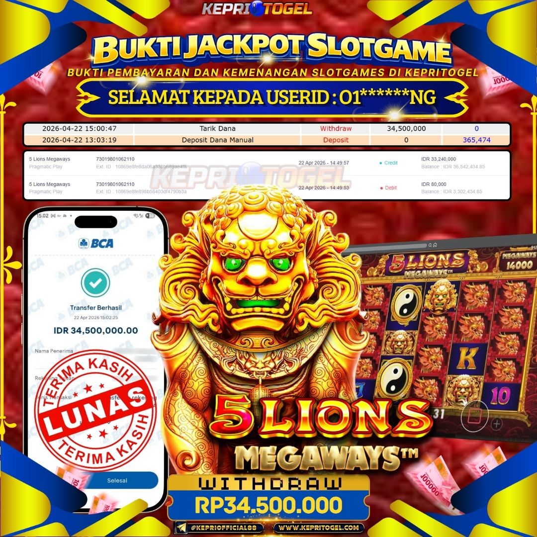 Kepritogel Jackpot Slot 5 Lions Megaways Rp34,500,000
