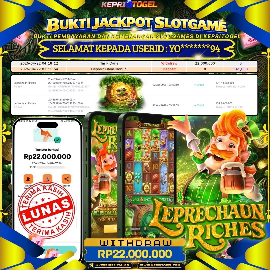 Kepritogel Jackpot Slot Leprechaun Riches Rp22,000,000
