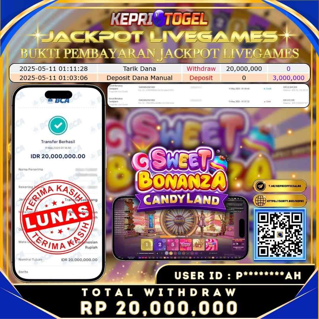 Kepritogel Jackpot Live Dealer Sweet Bonanza Candyland Rp20,000,000