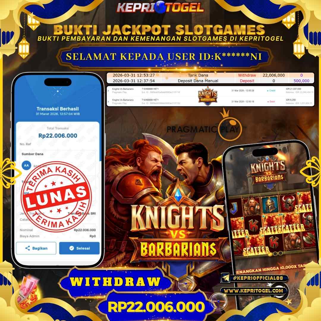 Kepritogel Jackpot Slot Knights VS Barbarians Rp22,006,000