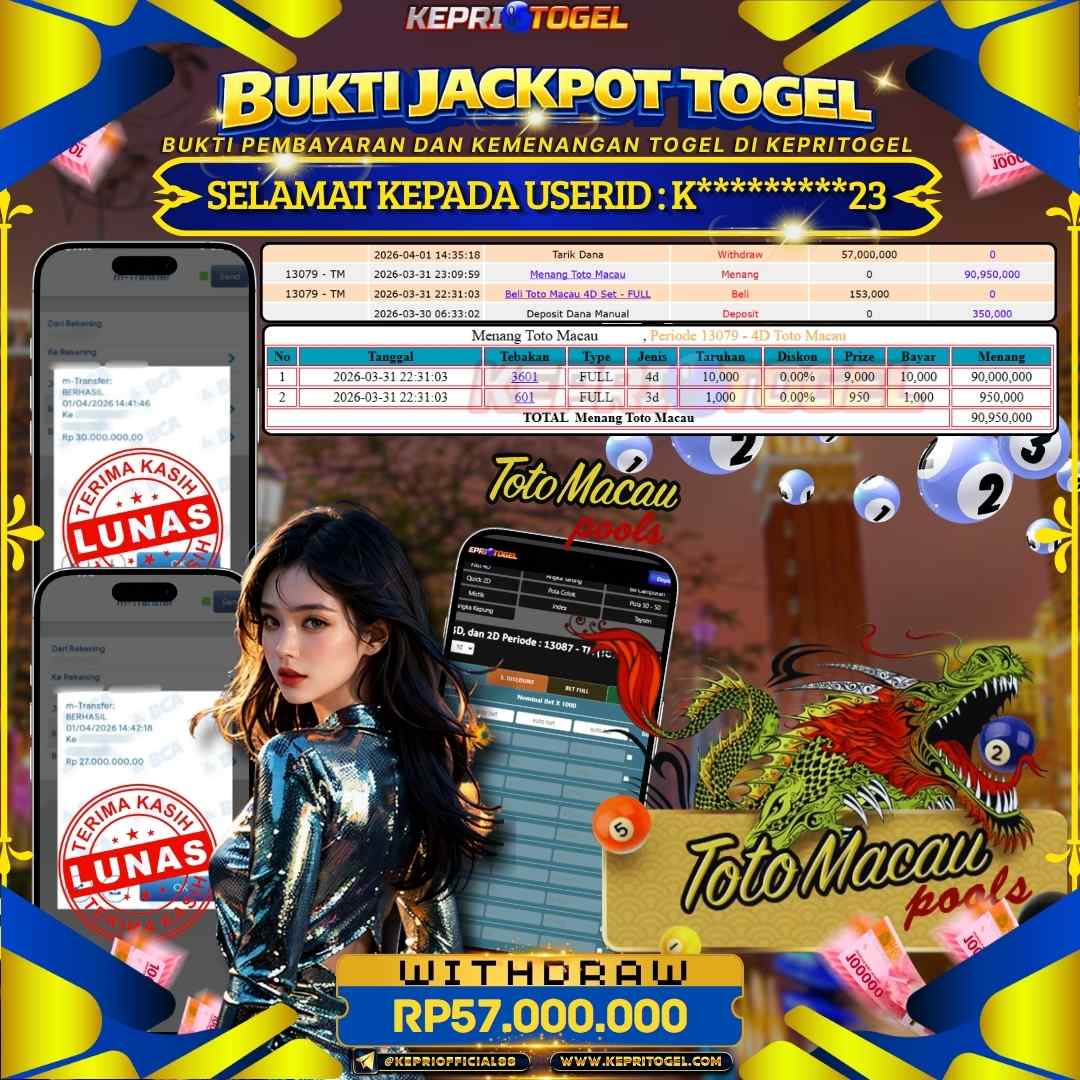 Kepritogel Jackpot Togel Toto Macau 4D Rp57,000,000