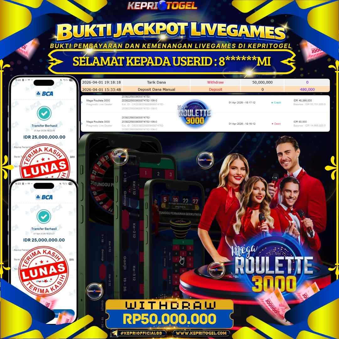 Kepritogel Jackpot Live Game Mega Roullete 3000 Rp50,000,000