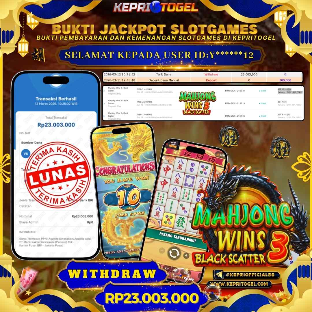 Selamat kepada UserId Y******12 telah berhasil mendapatkan kemenangan jackpot pada permainan Slot Mahjong Wins 3 Black Scatter Kepritogel sebesar Rp23,003,000,- . Kepritogel situs terpercaya sejak dulu hingga saat ini , Untuk kemenangan berapapun pasti akan kami bayarkan . Jangan ragu bermain di Kepri Togel . Kami pihak Kepritogel Menyampaikan terima kasih kepada seluruh member Kepri Togel yang telah Percaya dan setia Bersama kami bermain di Kepritogel hingga saat ini.