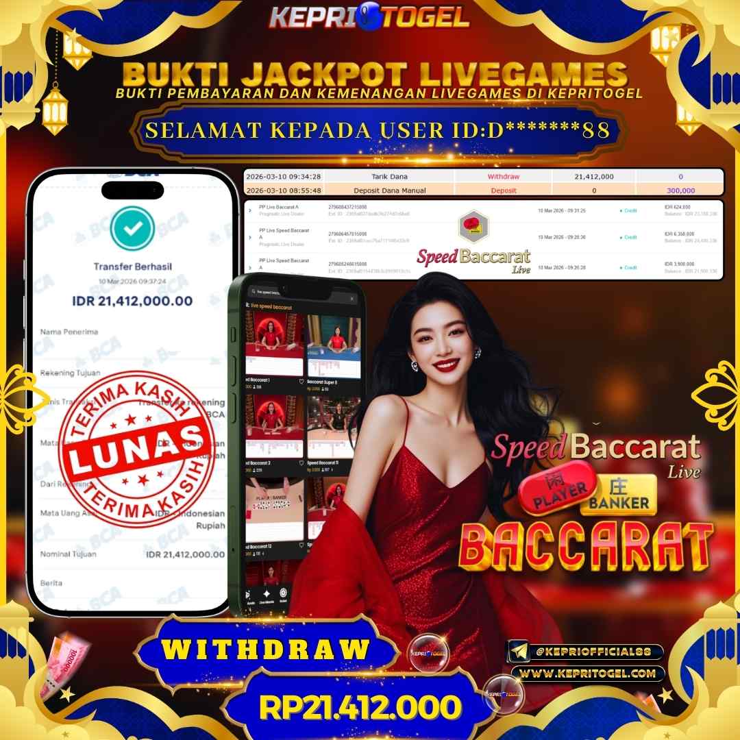 Selamat kepada UserId D*******88 telah berhasil mendapatkan kemenangan jackpot pada permainan Live Game Speed Baccarat Kepritogel sebesar Rp21,412,000,- . Kepritogel situs terpercaya sejak dulu hingga saat ini , Untuk kemenangan berapapun pasti akan kami bayarkan . Jangan ragu bermain di Kepri Togel . Kami pihak Kepritogel Menyampaikan terima kasih kepada seluruh member Kepri Togel yang telah Percaya dan setia Bersama kami bermain di Kepritogel hingga saat ini.