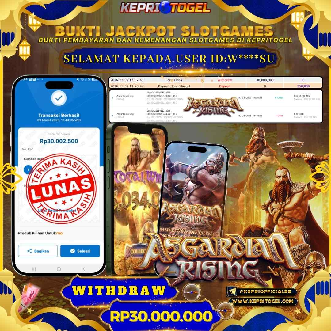 Selamat kepada UserId W****SU telah berhasil mendapatkan kemenangan jackpot pada permainan Slot Asgardian Rising Kepritogel sebesar Rp30,000,000,- . Kepritogel situs terpercaya sejak dulu hingga saat ini , Untuk kemenangan berapapun pasti akan kami bayarkan . Jangan ragu bermain di Kepri Togel . Kami pihak Kepritogel Menyampaikan terima kasih kepada seluruh member Kepri Togel yang telah Percaya dan setia Bersama kami bermain di Kepritogel hingga saat ini.