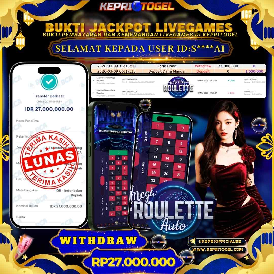 Kepritogel Jackpot Live Game Auto Mega Roullete Rp27,000,000