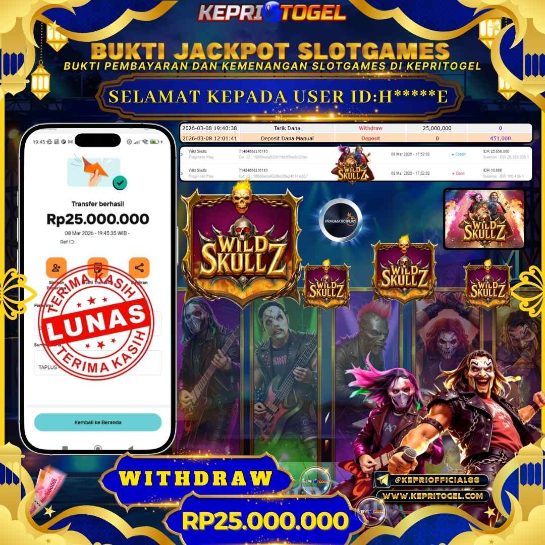 Selamat kepada UserId H*****E telah berhasil mendapatkan kemenangan jackpot pada permainan Slot Wild Skullz Kepritogel sebesar Rp25,000,000,- . Kepritogel situs terpercaya sejak dulu hingga saat ini , Untuk kemenangan berapapun pasti akan kami bayarkan . Jangan ragu bermain di Kepri Togel . Kami pihak Kepritogel Menyampaikan terima kasih kepada seluruh member Kepri Togel yang telah Percaya dan setia Bersama kami bermain di Kepritogel hingga saat ini.