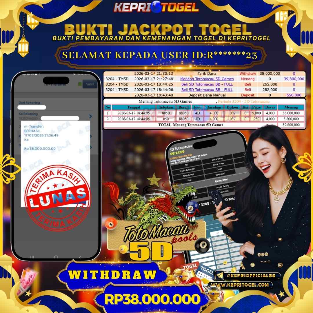Kepritogel Jackpot Togel Toto Macau 5D Rp38,000,000