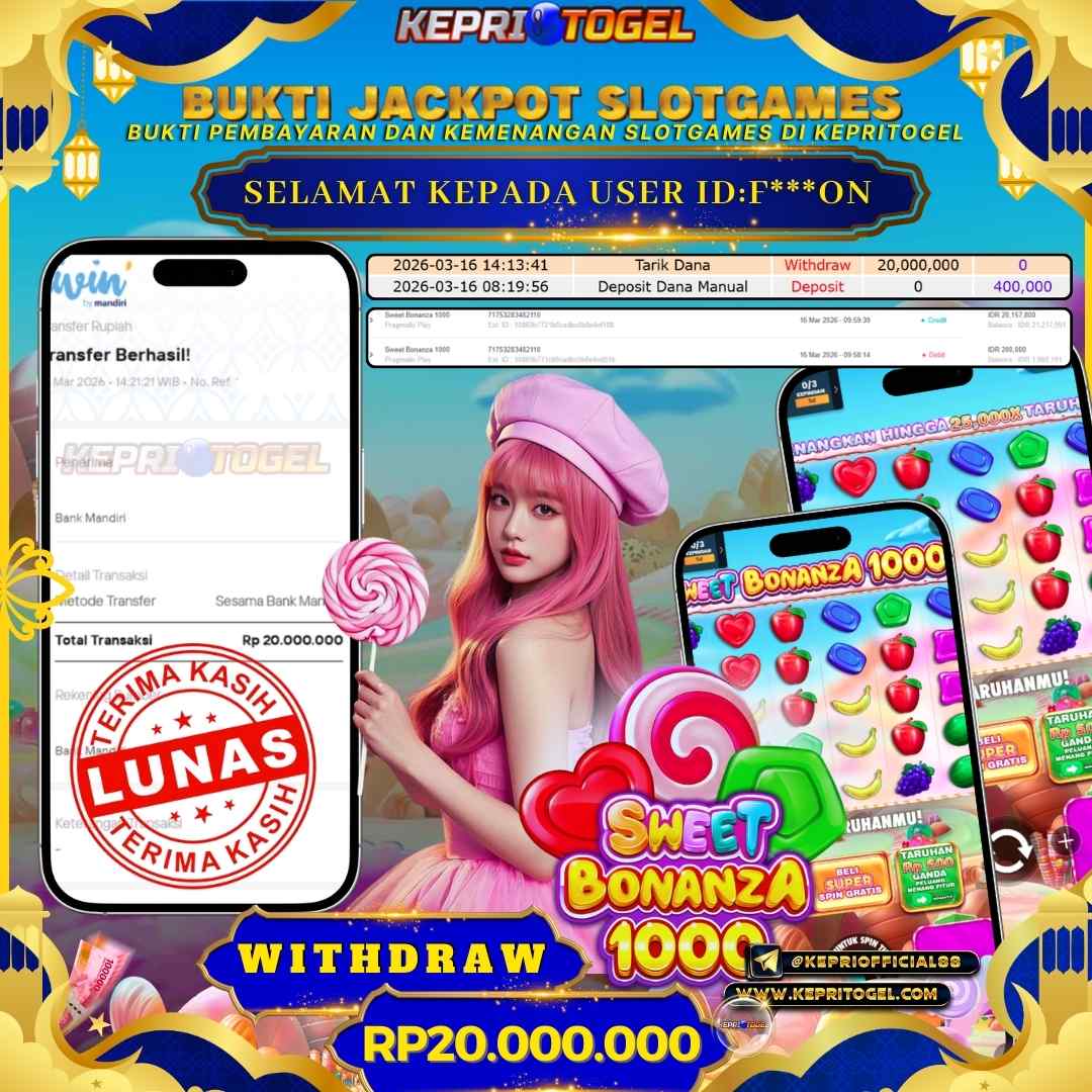Selamat kepada UserId F***ON telah berhasil mendapatkan kemenangan jackpot pada permainan Slot Sweet Bonanza 1000 Kepritogel sebesar Rp20,000,000,- . Kepritogel situs terpercaya sejak dulu hingga saat ini , Untuk kemenangan berapapun pasti akan kami bayarkan . Jangan ragu bermain di Kepri Togel . Kami pihak Kepritogel Menyampaikan terima kasih kepada seluruh member Kepri Togel yang telah Percaya dan setia Bersama kami bermain di Kepritogel hingga saat ini.