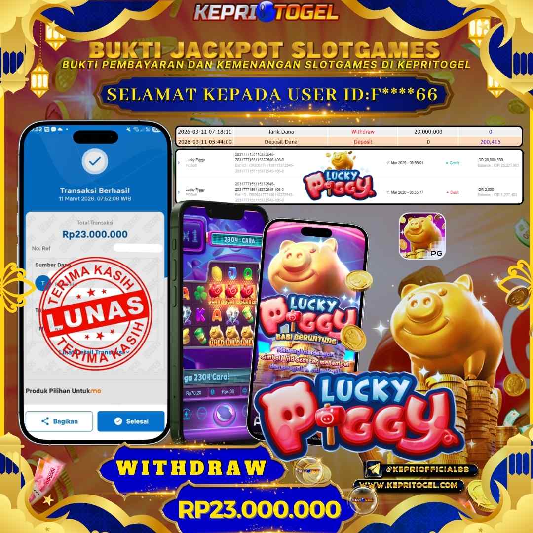Selamat kepada UserId F****66 telah berhasil mendapatkan kemenangan jackpot pada permainan Slot Lucky Piggy Kepritogel sebesar Rp23,000,000,- . Kepritogel situs terpercaya sejak dulu hingga saat ini , Untuk kemenangan berapapun pasti akan kami bayarkan . Jangan ragu bermain di Kepri Togel . Kami pihak Kepritogel Menyampaikan terima kasih kepada seluruh member Kepri Togel yang telah Percaya dan setia Bersama kami bermain di Kepritogel hingga saat ini.
