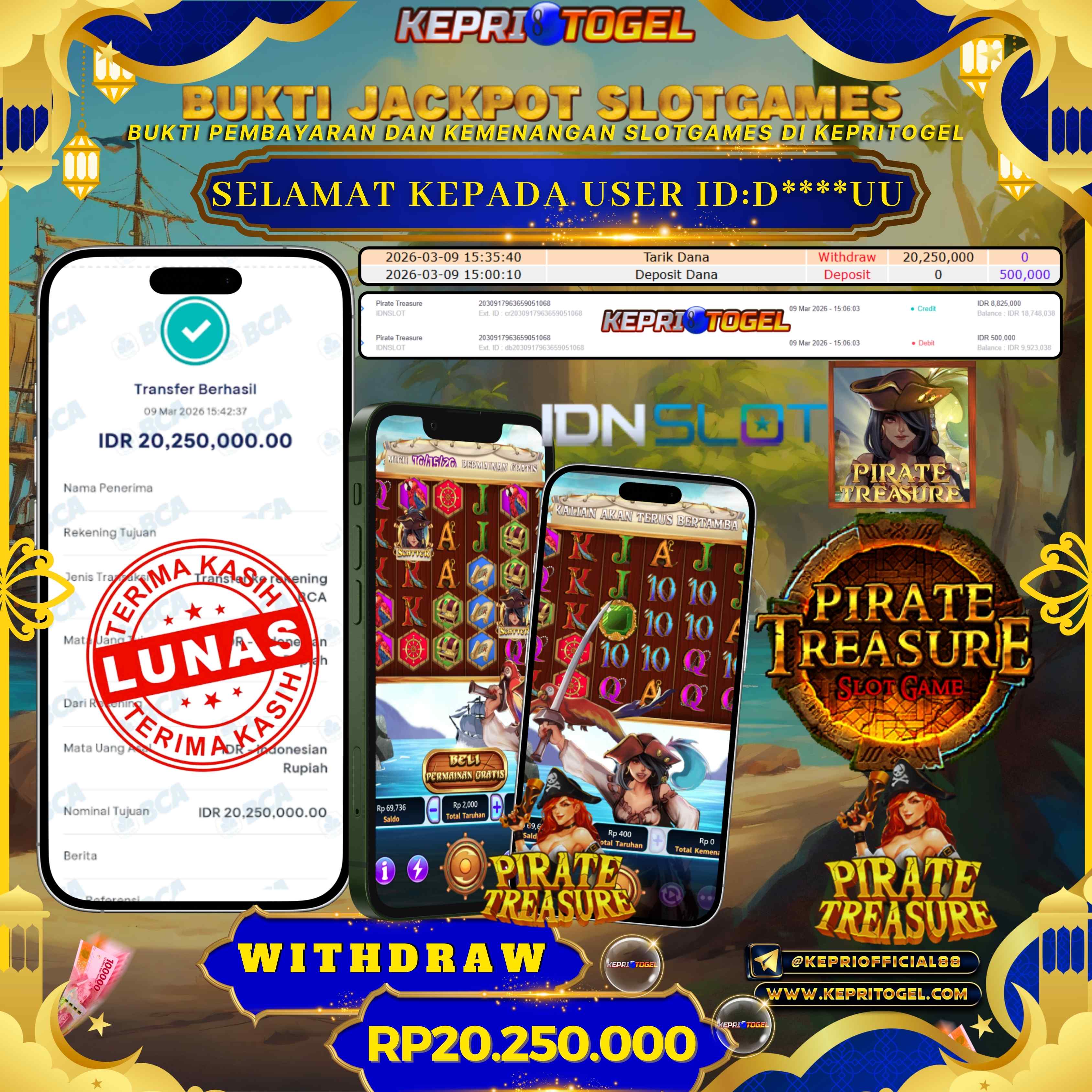 Kepritogel Jackpot Slot Pirate Treasure Rp20,250,000