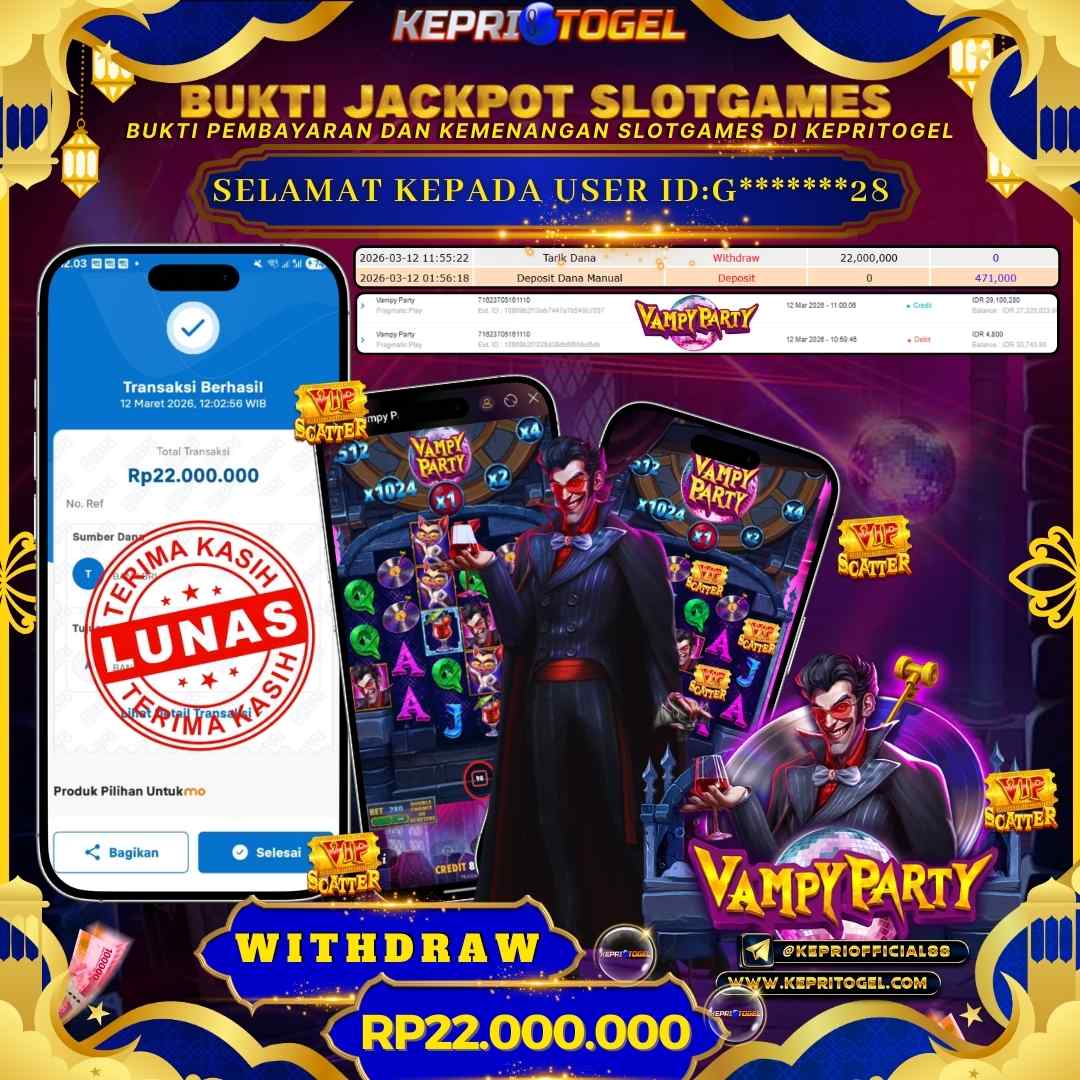 Selamat kepada UserId G*******28 telah berhasil mendapatkan kemenangan jackpot pada permainan Slot Vampy Party Kepritogel sebesar Rp22,000,000,- . Kepritogel situs terpercaya sejak dulu hingga saat ini , Untuk kemenangan berapapun pasti akan kami bayarkan . Jangan ragu bermain di Kepri Togel . Kami pihak Kepritogel Menyampaikan terima kasih kepada seluruh member Kepri Togel yang telah Percaya dan setia Bersama kami bermain di Kepritogel hingga saat ini.