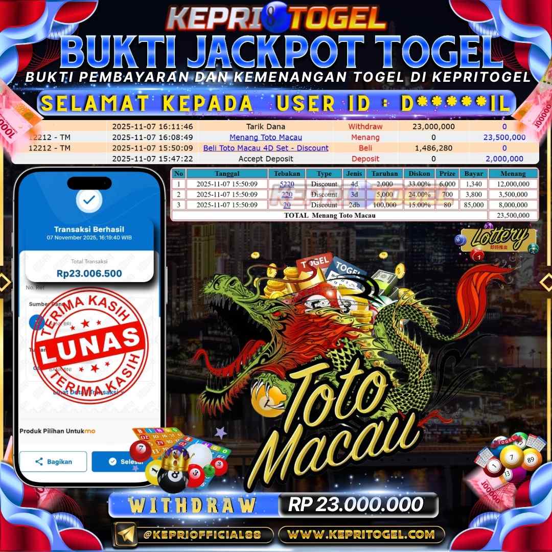 Kepritogel Jackpot Togel Toto Macau Rp23,000,000