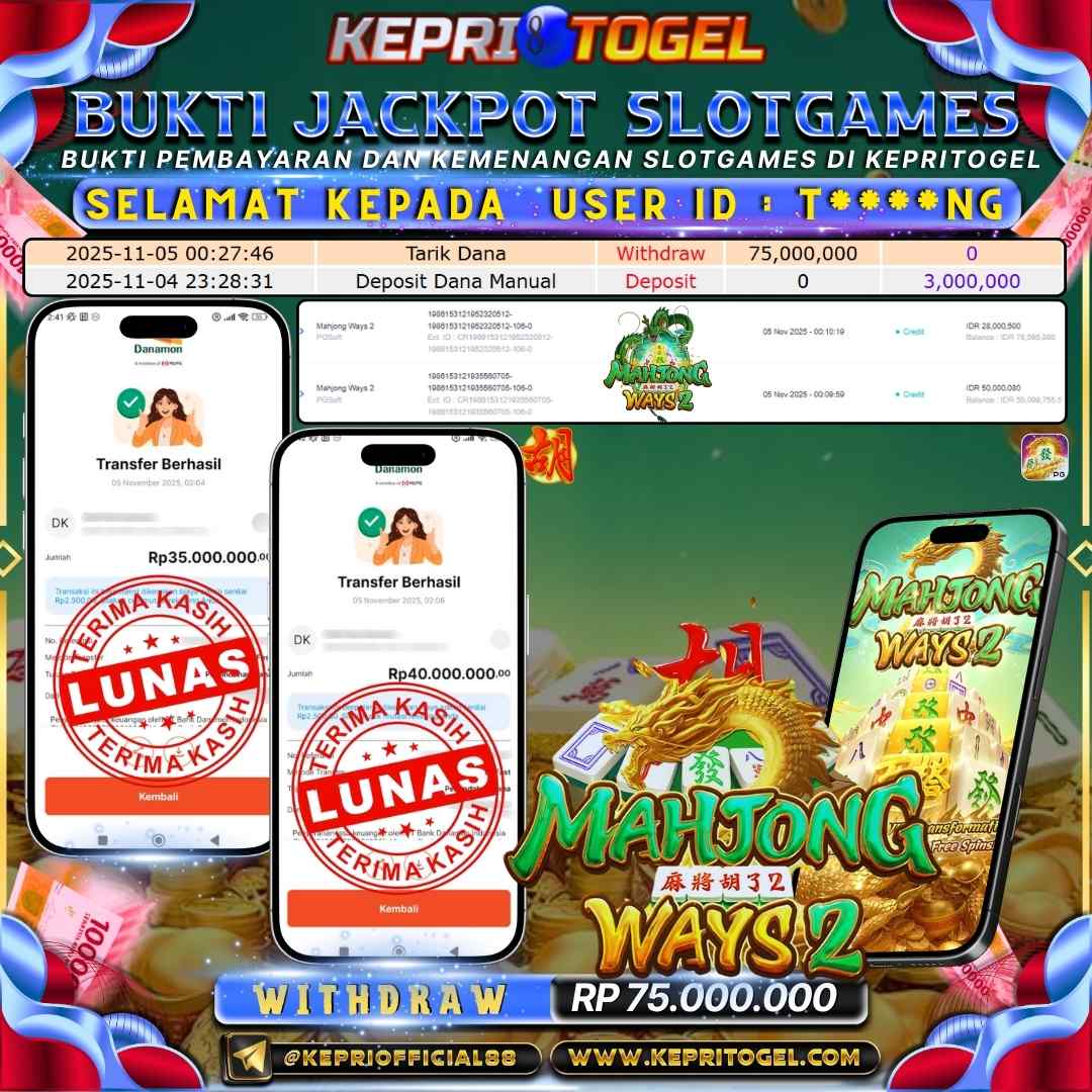 Kepritogel Jackpot Slot Mahjong Ways 2 Rp75,000,000