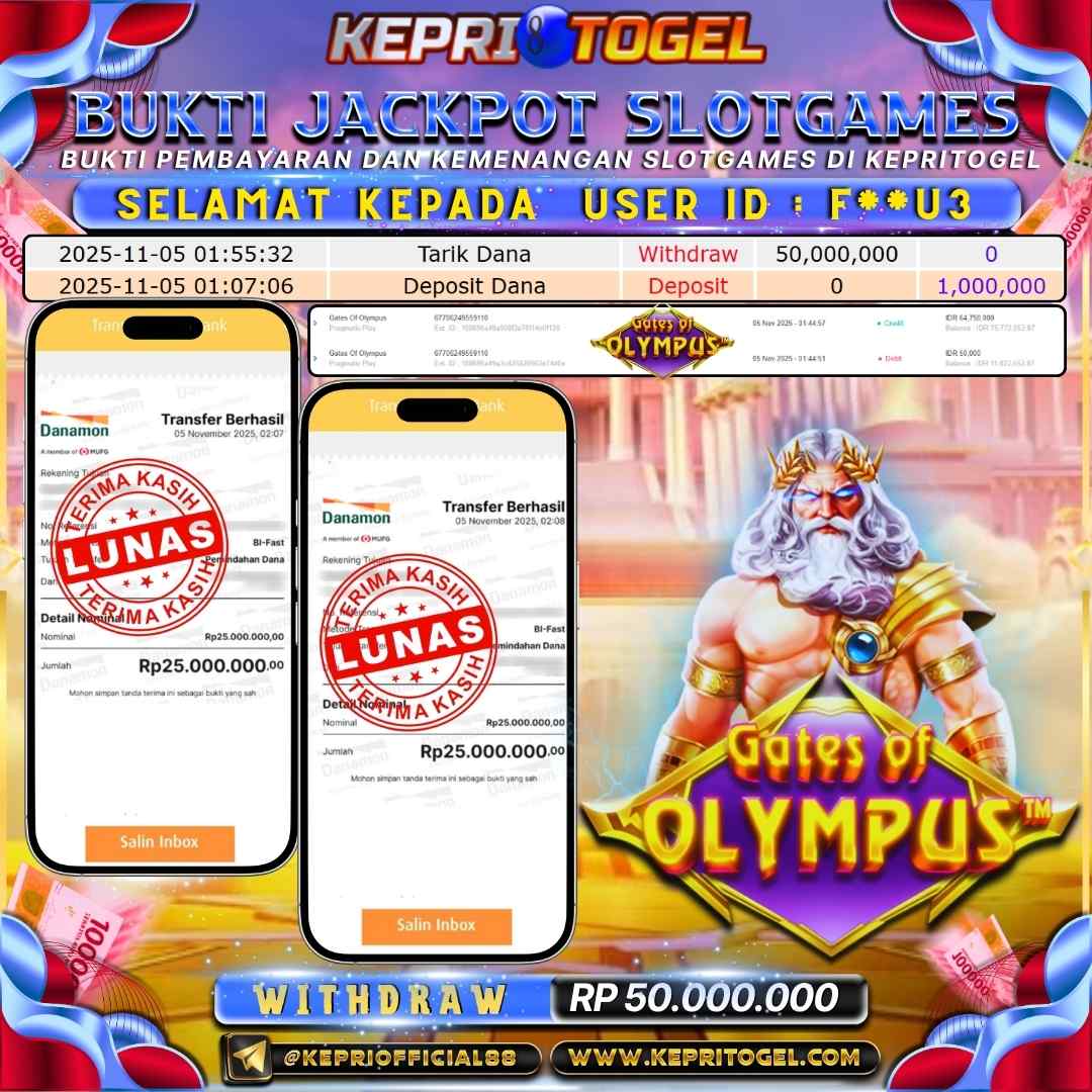 Kepritogel Jackpot Slot Gates Of Olympus Rp50,000,000