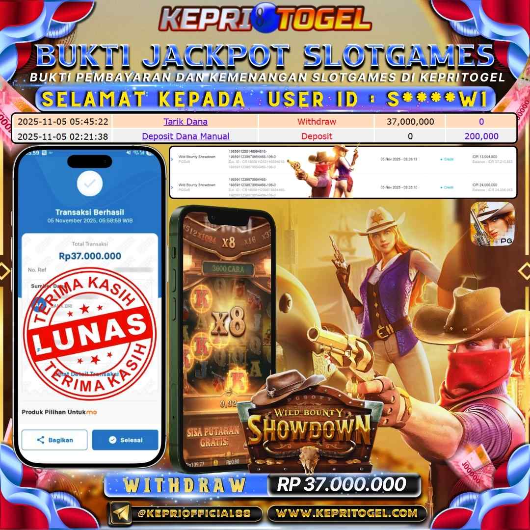 Selamat kepada UserId S****W1 telah berhasil mendapatkan kemenangan jackpot pada permainan Slot Wild Bounty Showdown Kepritogel sebesar Rp37,000,000,- . Kepritogel situs terpercaya sejak dulu hingga saat ini , Untuk kemenangan berapapun pasti akan kami bayarkan . Jangan ragu bermain di Kepri Togel . Kami pihak Kepritogel Menyampaikan terima kasih kepada seluruh member Kepri Togel yang telah Percaya dan setia Bersama kami bermain di Kepritogel hingga saat ini.