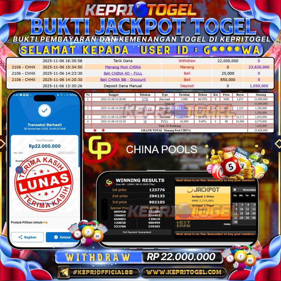 Kepritogel Jackpot Togel China Pools Rp22,000,000