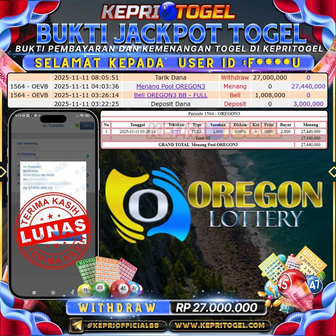 Kepritogel Jackpot Togel Oregon Lottery Rp27,000,000