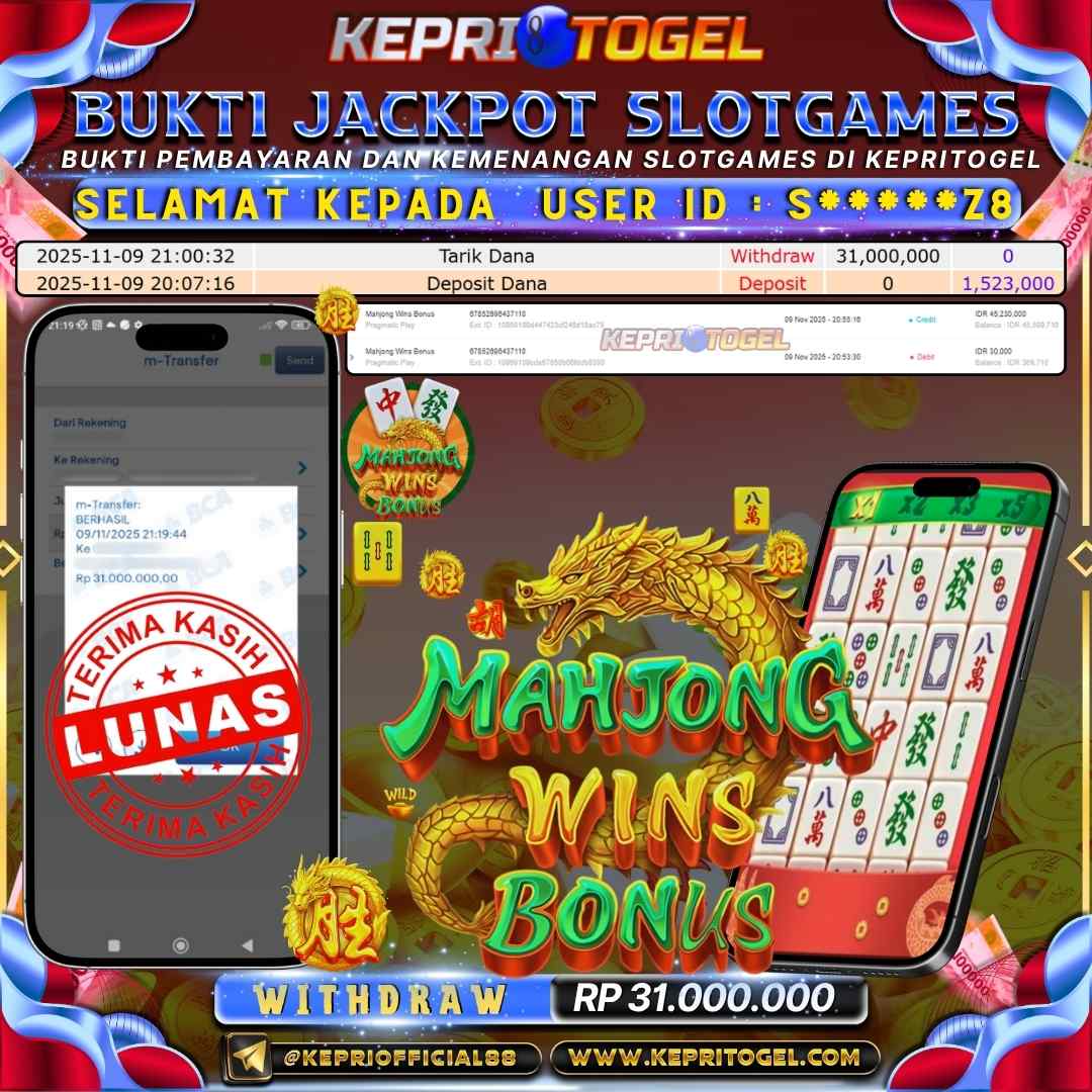 Kepritogel Jackpot Slot Mahjong Wins Bonus Rp31,000,000