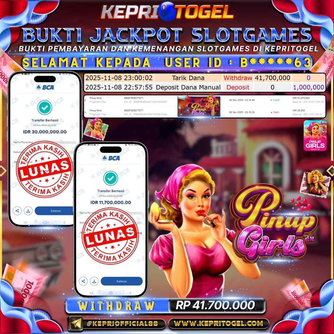 Selamat kepada UserId B*****63 telah berhasil mendapatkan kemenangan jackpot pada permainan Slot Pinus Girls Kepritogel sebesar Rp41,700,000,- . Kepritogel situs terpercaya sejak dulu hingga saat ini , Untuk kemenangan berapapun pasti akan kami bayarkan . Jangan ragu bermain di Kepri Togel . Kami pihak Kepritogel Menyampaikan terima kasih kepada seluruh member Kepri Togel yang telah Percaya dan setia Bersama kami bermain di Kepritogel hingga saat ini.