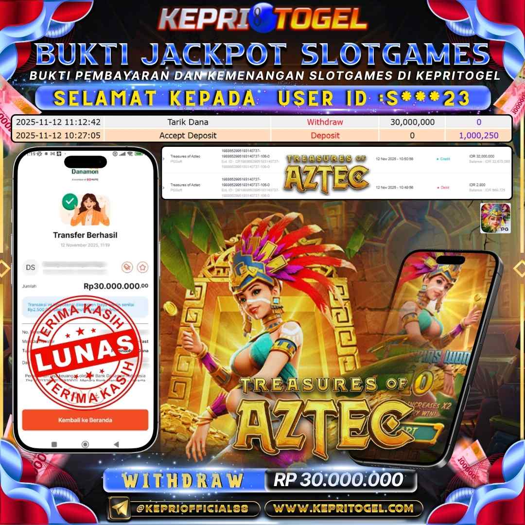 Kepritogel Jackpot Slot Treasures of Aztec Rp30,000,000