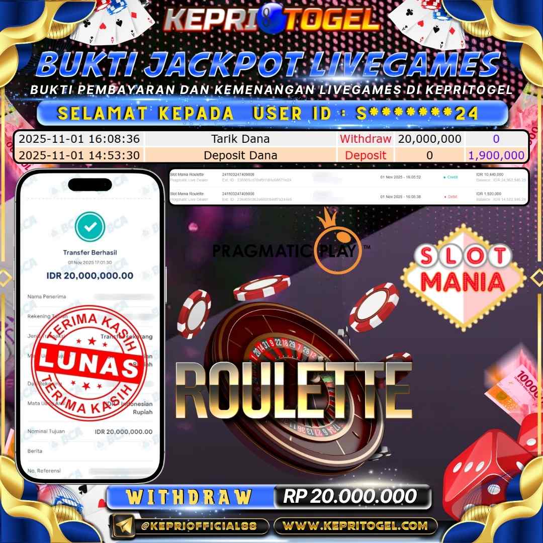 Kepritogel Jackpot Live Game Slot Mania Roulette Rp20,000,000
