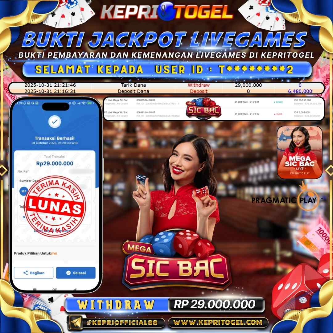 kepritogel Jackpot Live Game Mega Sicbac Rp29,000,000