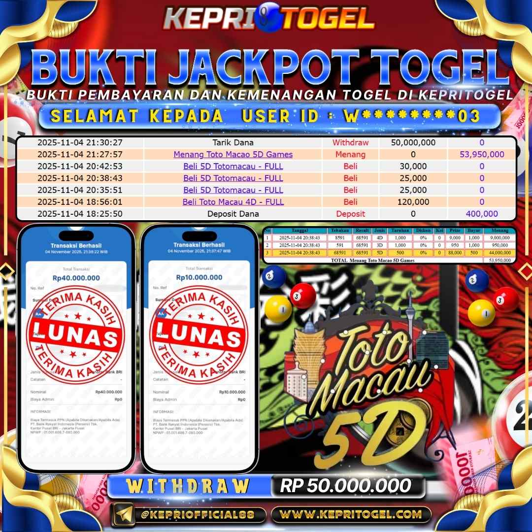 Kepritogel Jackpot Togel Toto Macau 5D Rp50,000,000