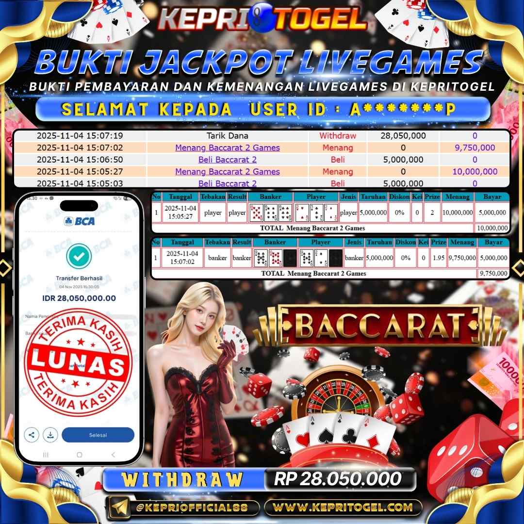 kepritogel Jackpot Live Game Baccarat Rp28,050,000