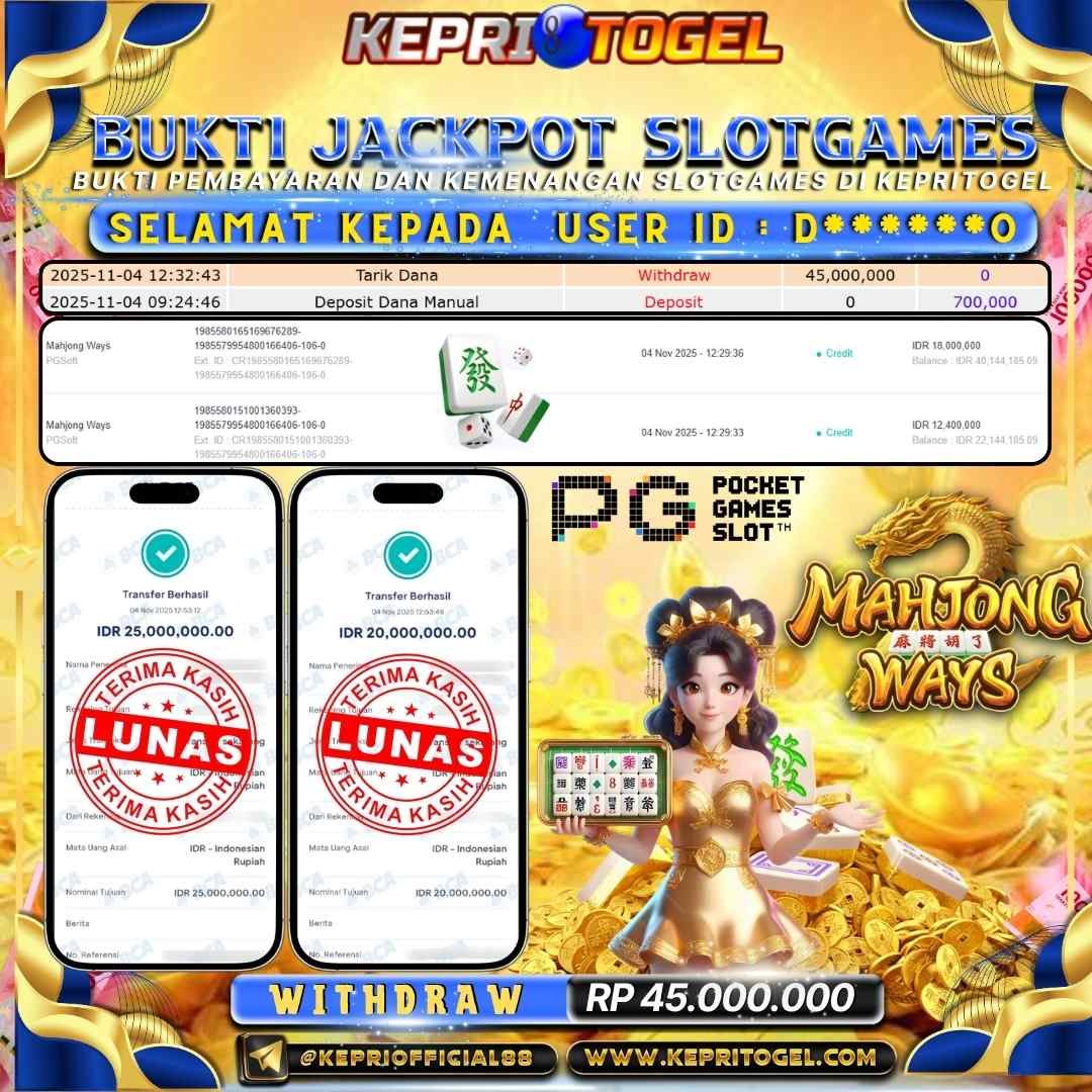 Kepritogel Jackpot Slot Mahjong Ways Rp45,000,000